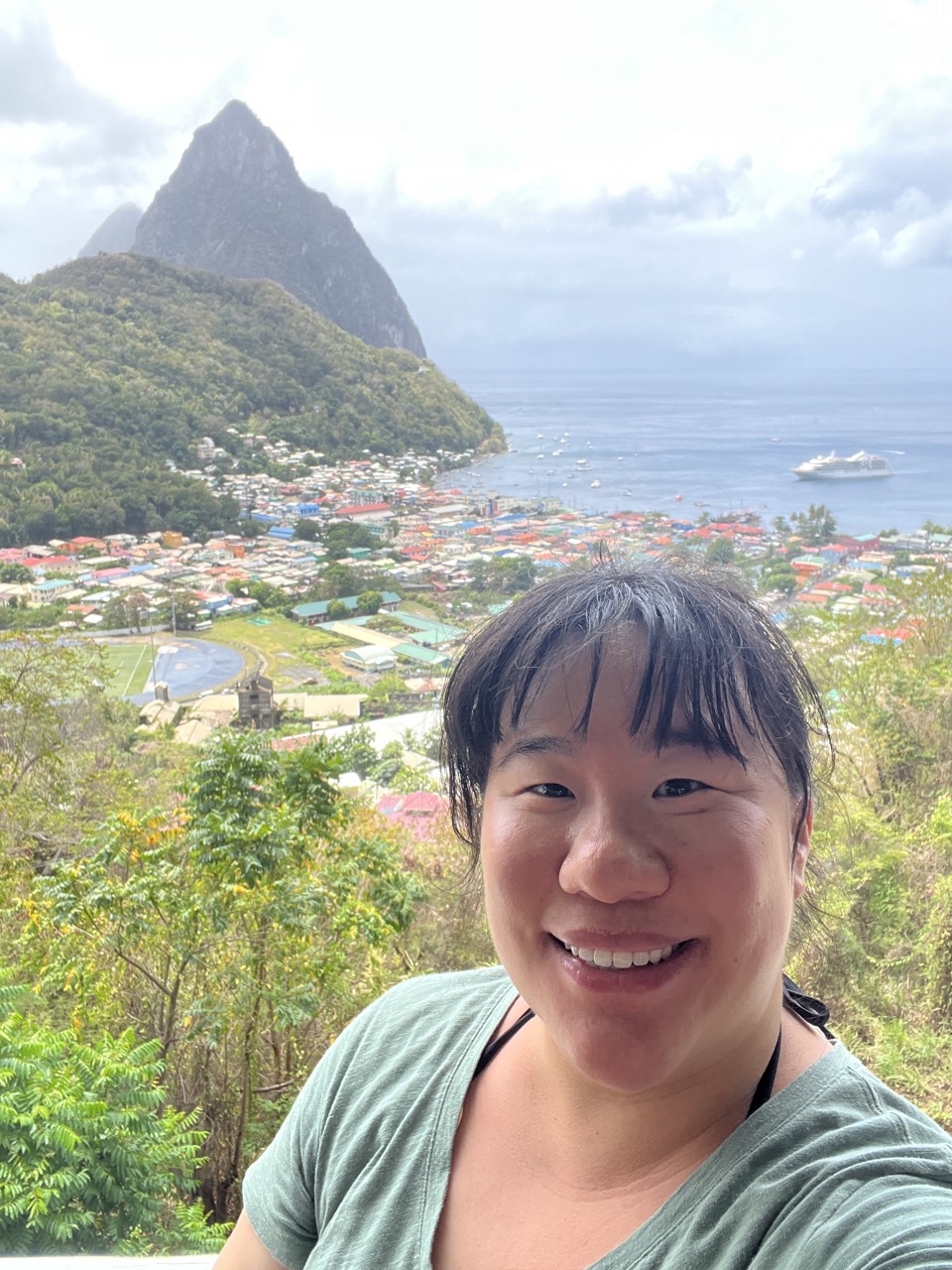 I would say Book an Excursion for this port. There wasn’t much around the cruise port so a transfer would be required to go anywhere. The main attraction are the Pitons (dormant volcanic spires) which are not near the cruise transport so seeing or hiking near them would require transport. We did an excursion where we saw the island and the Pitons via car, had lunch, did a botanical tour, and then sailed a catamaran back to the port with a farewell view of the Pitons, and I would say it was worth the money. We also got a ~30 minute stop to swim and see the black sand when we were on the catamaran. It was super fun, and I think the highlight was the catamaran as it was way faster to travel as the roads have lots of switchbacks.