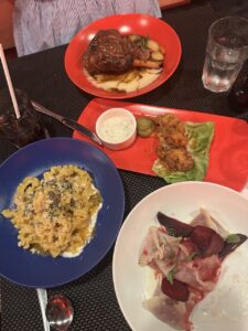 I would say Book an Excursion for this port. This excursion will likely be a resort visit, so I would suggest researching ahead of time to see what resort you might want to visit. For us, we visited the Park Hyatt and really liked it! We were also lucky that it was relatively empty. The resort pass included an adults only section as well as a large family pool and a private beach – perfect for quiet, luxurious relaxation! We took a group taxi with people also heading there for $10 per person one way for about a 20 minute ride. The taxi driver also called out a viewpoint where you can see the water difference between the Atlantic Ocean and the Caribbean Sea. The ocean had stronger, bigger waves whereas the sea had calmer, smaller waves.